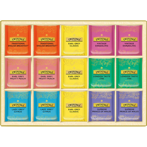 ●内容/アールグレイフルーティーピーチ・レディグレイシトラス・トラディショナルイングリッシュブレックファスト・ロンドンテイスト 1706・シュープリームプリンスオブウェールズ・ヴィンテージダージリン各2.3g×各10、アールグレイクラシック2.3g×15