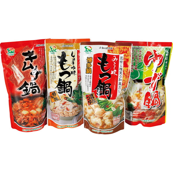 ●内容/鍋つゆ(ゆず鍋800ml・キムチ鍋600ml・もつ鍋[醤油・味噌]各600ml)