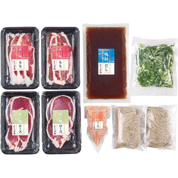 ●内容/あい鴨ロース肉・あい鴨もも肉×各60g×各2,あい鴨入りつくね150g×1,鴨鍋だし300g×1,信州そば130g×2,青ねぎ80g×1  ※お申し込み期間:12月14日(日)迄 ※配送不可地域 沖縄・離島 12月20日迄のお届け