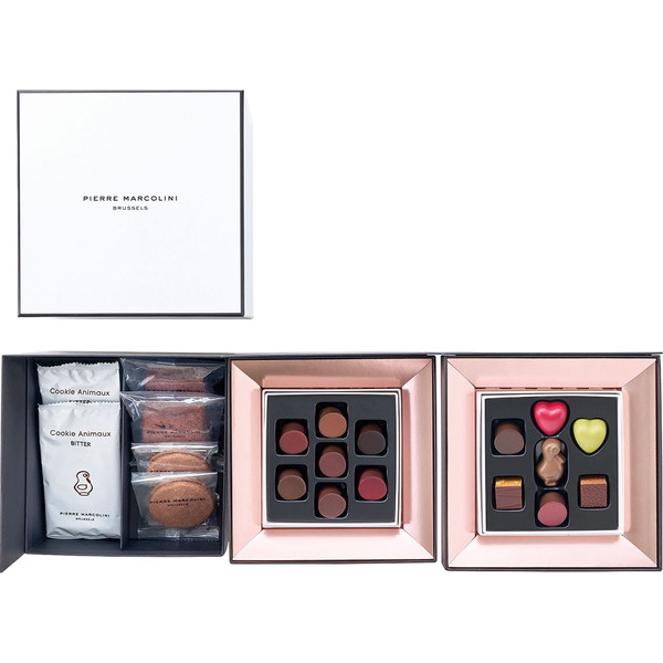 ●内容/クッキー アニモ ビター、クッキー アニモ ミルク×各1、ケーク ショコラ、サブレ ショコラ×各2、セレクション 7個入り(ピエール マルコリーニ グラン クリュ、マダガスカル グラン クリュ、クール フランボワーズ、クール ピスターシュ、アニモ キャラメル、プラリネ ピスターシュ、プラリネ ノワゼット & グリュエ ドゥ カカオ×各1)、グラン クリュ セレクション 7個入り(ピエール マルコリ