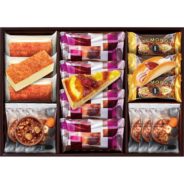 ●内容/ニューヨークチーズケーキ・アーモンドチョコバレット×各3、フルーツタルト×4、ウォールナッツファンキー×6
