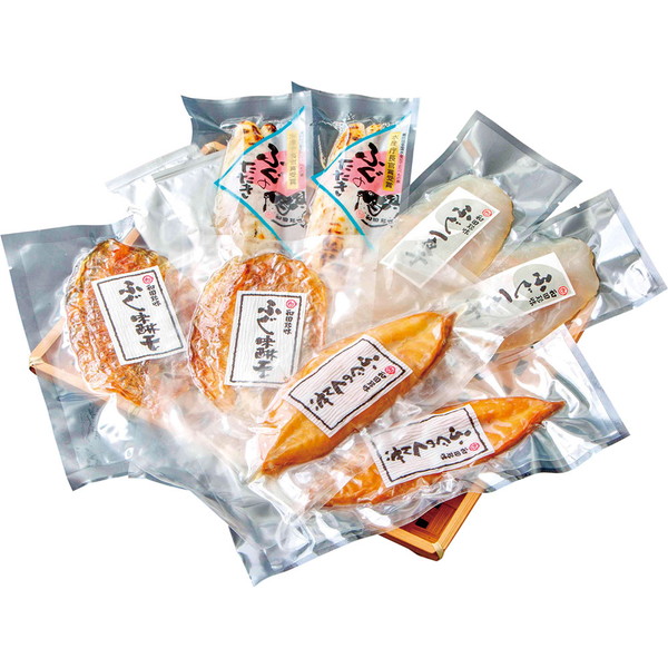 ●内容/ふぐ一夜干2尾・ふぐのくんせい2枚・ふぐ味醂干2枚・ふぐのたたき2本