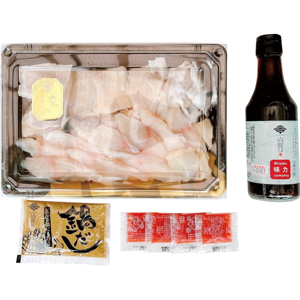 ●内容/天然トラフグちり500g、ポン酢250ml、鍋だし55g、もみじおろし5g×4※お申し込み期間:12月14日(日)迄