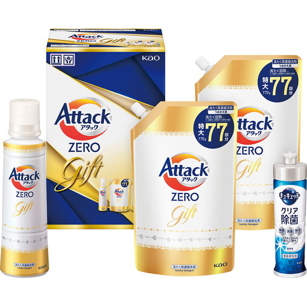 ●内容/アタックZERO580g×1本、アタックZEROつめかえ用770g×2袋、キュキュット クリア除菌220ml×1本、日本製