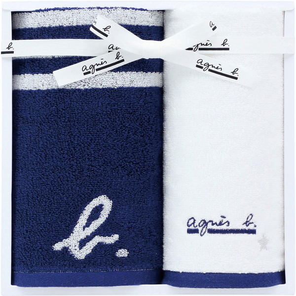 シンプルなロゴの2枚タオルセット ダークブルー