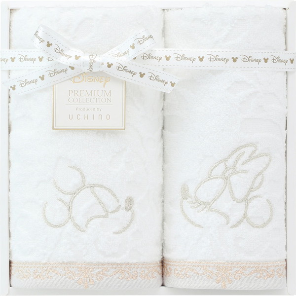 ミッキーの刺繍がかわいいタオル2種各1枚 ホワイト