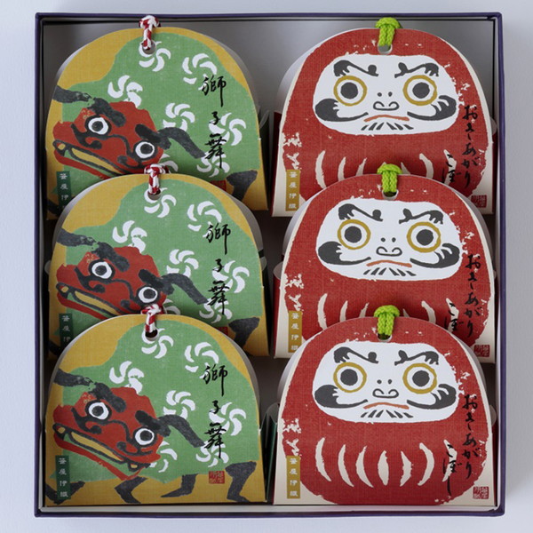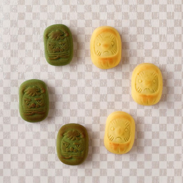 おきあがりこぼしにはこしあん、獅子舞には抹茶あんが入っています。