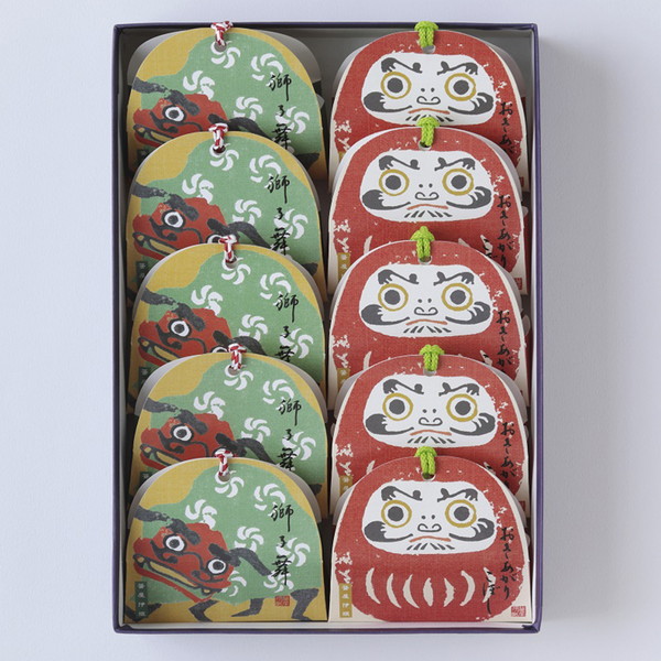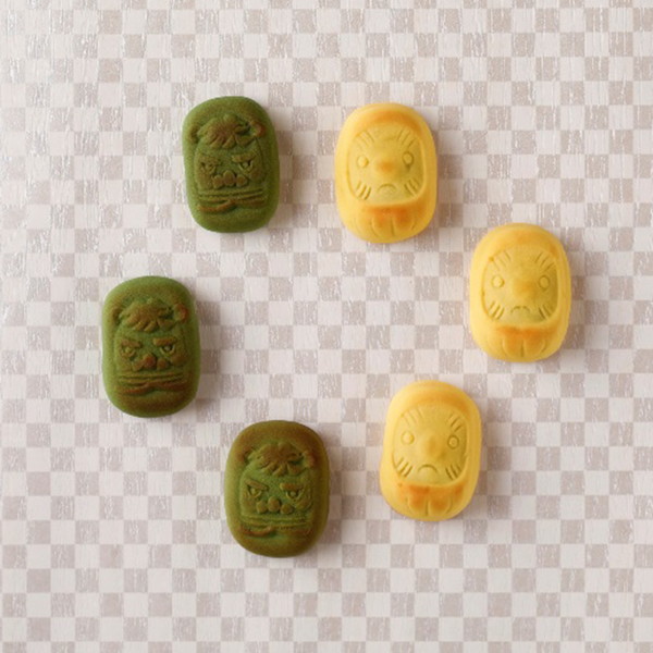おきあがりこぼしにはこしあん、獅子舞には抹茶あんが入っています。