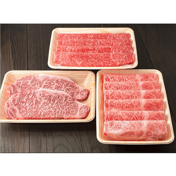 ●内容/1セット(和牛ロ-スステ-キ160g×2・和牛モモしゃぶしゃぶ用300g・和牛肩ロ-スすき焼用300g