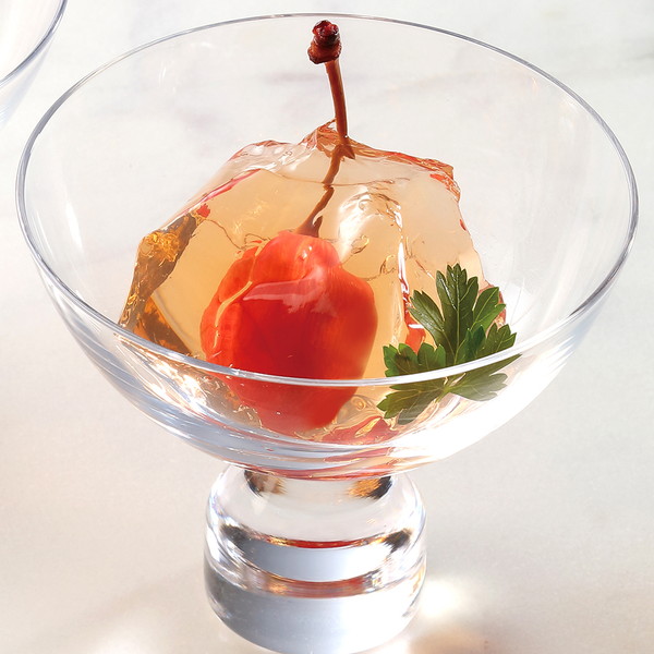 甘さすっきりと蜜漬けされたさくらんぼを、磨き抜かれた宝石のように、美しくなめらかな口当たりのぜりぃで包みました。