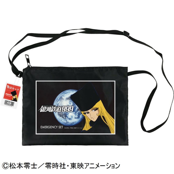名作アニメ「TV版 銀河鉄道999」のデザインがプリントされた、肩からかけられるサコッシュタイプの防災セットです。