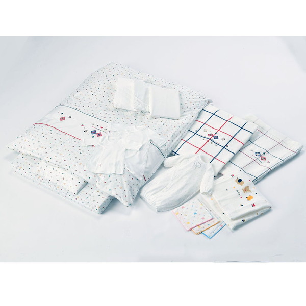 ●内容/ベビー布団セットカントリー(掛布団:中綿羽毛ダウン70%・フェザー30%、敷布団:エコホールサンドマット仕様、ピッタシーツ:枕、キルトパット(表・裏・綿100%)、中わた(綿100%)、防水シーツ:(ポリエステル100%・120×70cm)、短肌着50-60cm(綿100%)、コンビ肌着50-60cm体重3-6kg(綿100%)、ツーウェイドレス春夏用(50-70cm・体重・3-9kg・綿100%)・バスタオル(90×90cm・無撚糸タオル裏ガーゼ)、ハンカチ(34×34cm・3枚組)、タオルケットカントリー、綿毛布カントリー(115×85cm・よこ糸(毛部分):綿100%・たて糸:ポリエステル100%・羽毛部分綿100%)