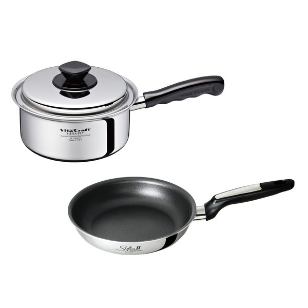 ●サイズ/キサプライ片手鍋1.9L:内径17㎝・深さ8.5㎝、ソフィアⅡフライパン22cm:内径22cm・深さ4.8cm