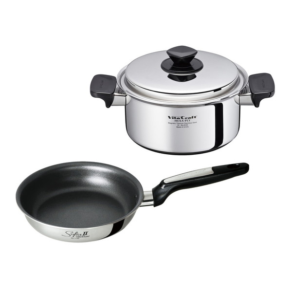 ●サイズ/ヘキサプライ両手鍋3.0L:内径19㎝・深さ10㎝、ソフィアⅡフライパン22cm:内径22cm・深さ4.8cm