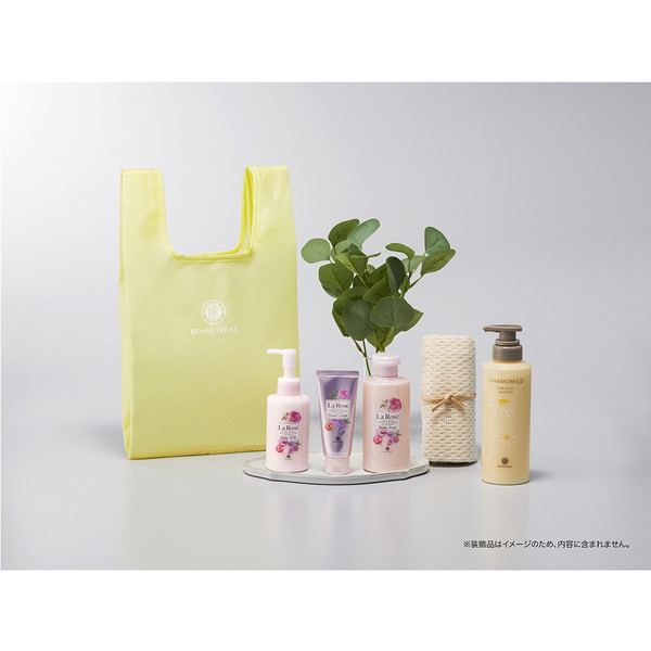 ●内容/カモマイルドピュアシャンプー300mL・ラローゼ ボディミルク150mL・ラローゼ ボディソープ250mL・ラローゼ ハンドクリーム50g・ボディタオル・エコバッグ