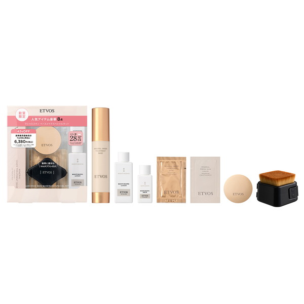 ●内容/・ミネラルインナートリートメントベース#ラベンダーベージュ 25ml(現品)・ミネラルインナートリートメントベース♯ポーセリンベージュ(パウチ1ml×3包) ・ミネラルインナートリートメントベース♯ピンクベージュ(パウチ1ml×3包) ・ミネラルフレッシュスキンリキッド#ナチュラル(パウチ0.8ml×2包)・ミネラルリフレクティングスキンパウダー♯ルーセントエクリュ0.8g(ミニ容器)・フラットチェンジブラシ(現品)・モイスチャライジングローションⅠ20ml(ミニボトル)・モイスチャライジングセラムⅠ10ml(ミニボトル)