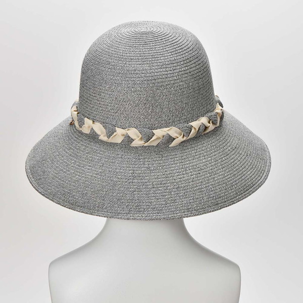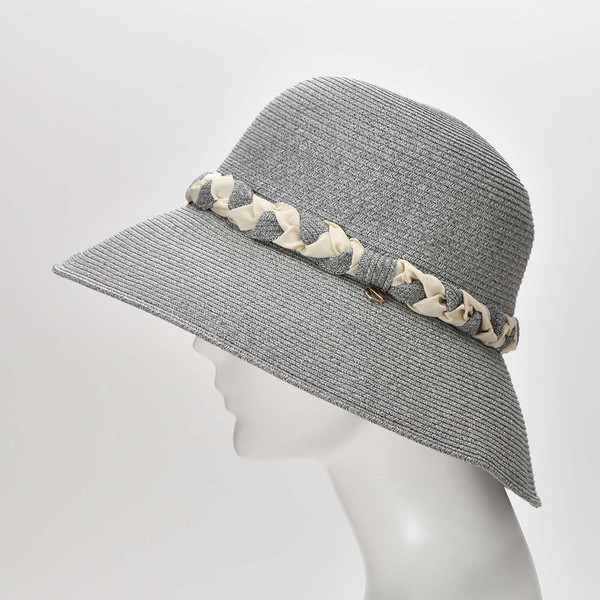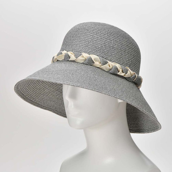 アクセントとして三つ編み状の飾りリボンがあしらわれた上品なデザインです。