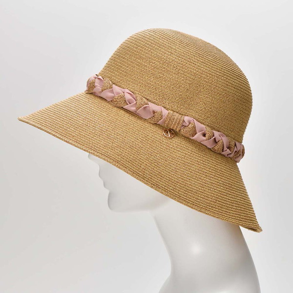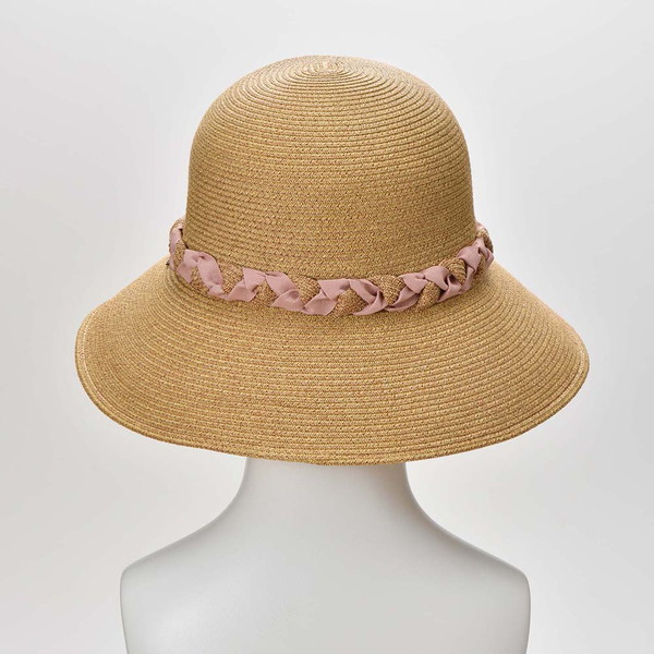 アクセントとして三つ編み状の飾りリボンがあしらわれた上品なデザインです。