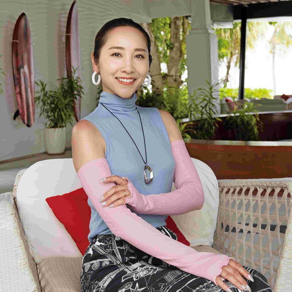 紫外線対策に欠かせないアームカバーは、指穴があるので手の甲までしっかりカバーします。