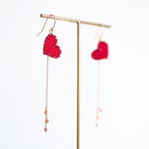 ハートと天然石のついたチェーンが揺れて、お顔周りを華やかに彩ってくれます。