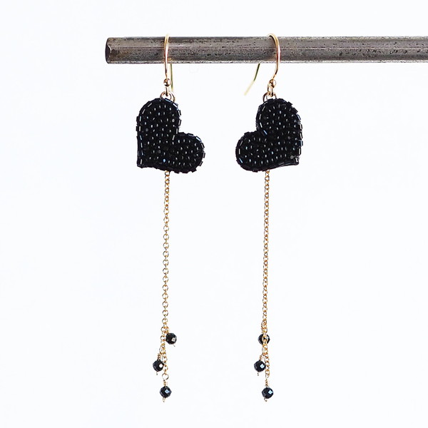 ハートと天然石のついたチェーンが揺れて、お顔周りを華やかに彩ってくれます。