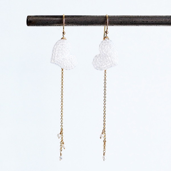 ハートと天然石のついたチェーンが揺れて、お顔周りを華やかに彩ってくれます。