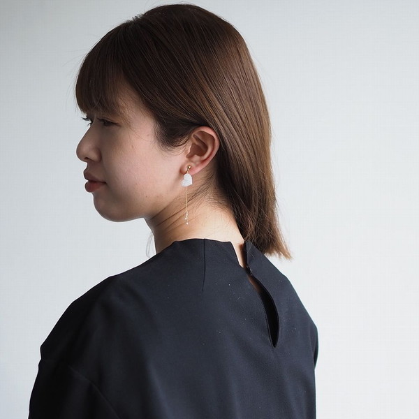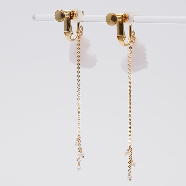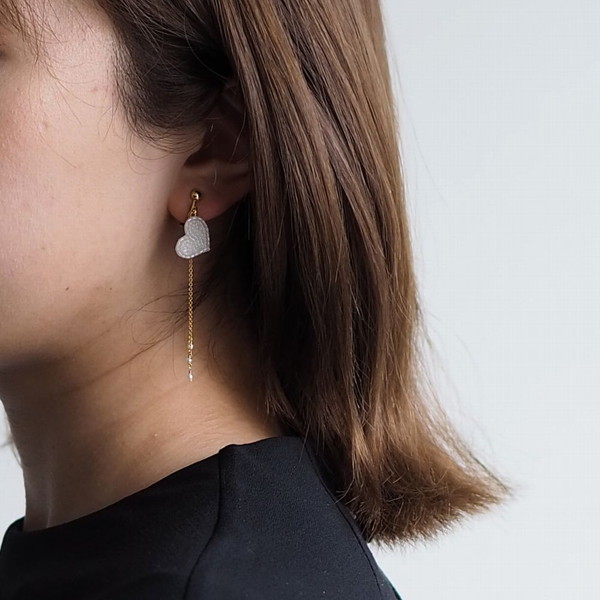 ハートと天然石のついたチェーンが揺れて、お顔周りを華やかに彩ってくれます。