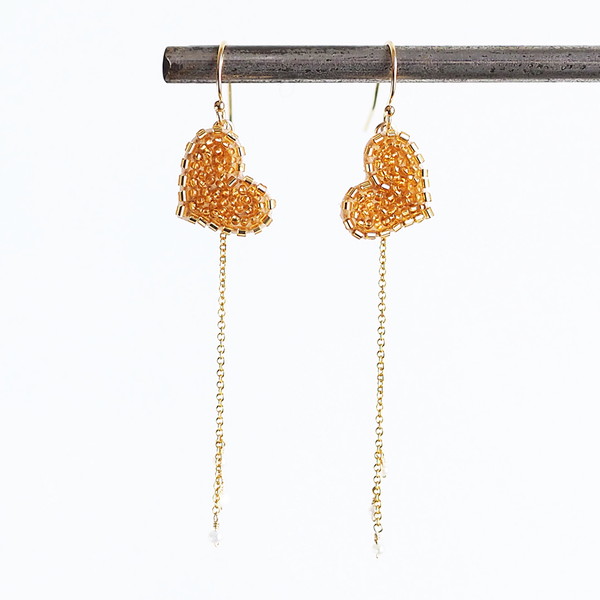 ハートと天然石のついたチェーンが揺れて、お顔周りを華やかに彩ってくれます。