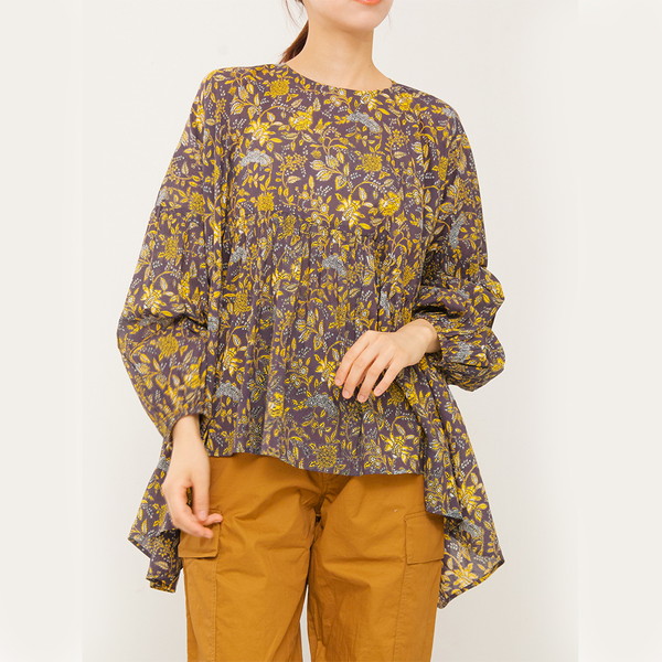 たっぷりとした袖はゴム入りカフスでふんわり仕上げ、快適な着心地と動きのある表情をプラス。
