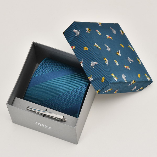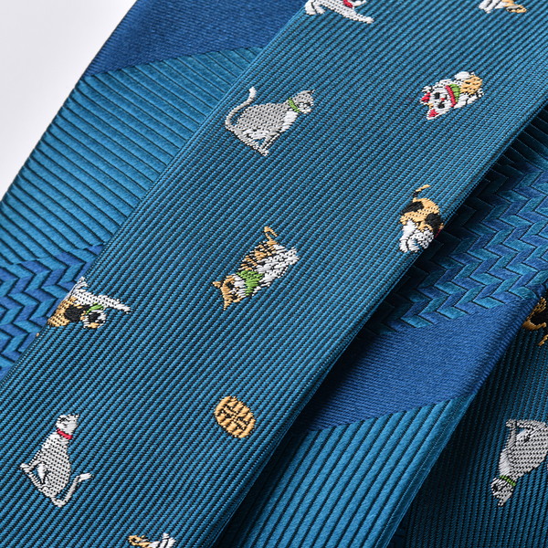 小剣に動物モチーフをあしらった、遊び心のあるネクタイです。