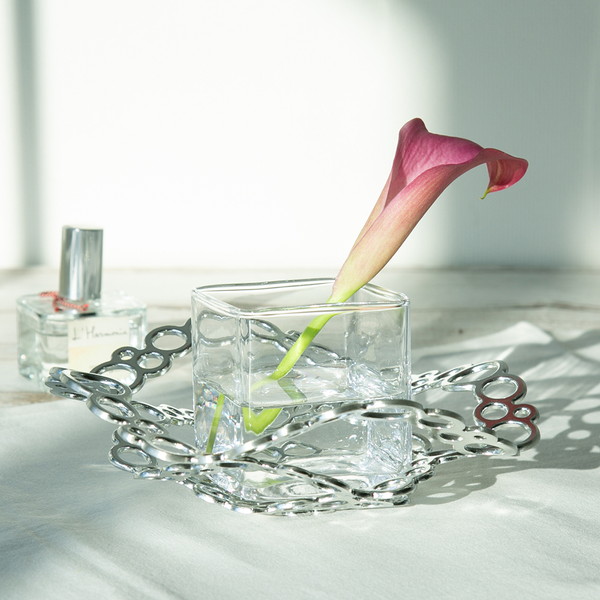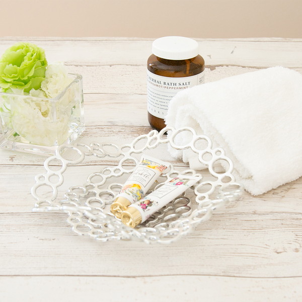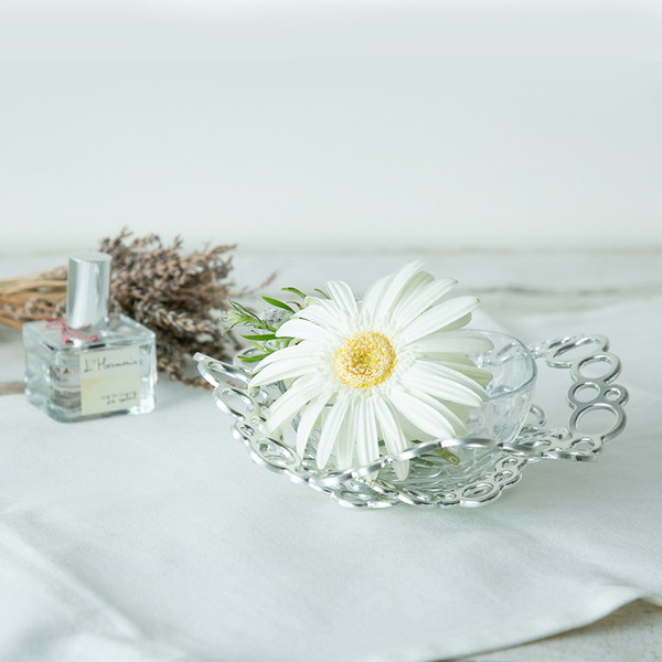 これまでと変わらず錫100%のやわらかさを最大限に生かしているので形をカゴ状に変えて、フルーツトレーや菓子器、アメニティグッズのトレーとして様々なシーンでご使用いただけます。