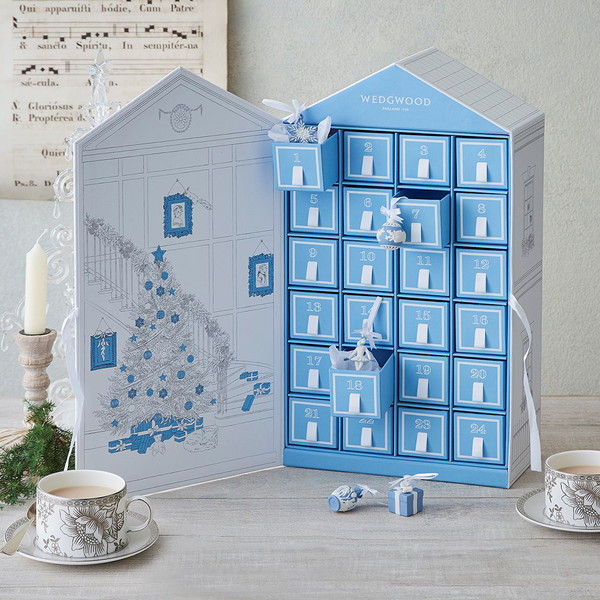 ジョージアンスタイルの邸宅を模ったボックスには24個の小さな引出しが詰まっています。