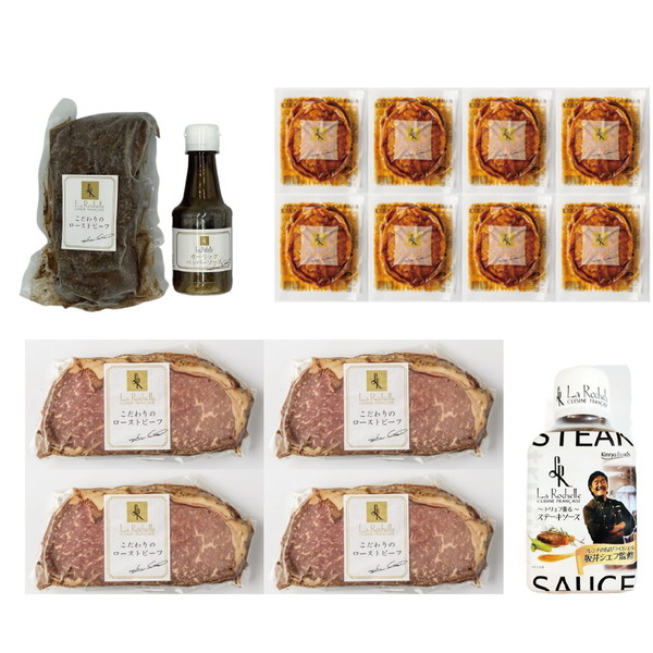 ●内容/ローストビーフ350g、特製ガーリックペッパーソース120ml、ローストビーフステーキ100g×4、ソース205g