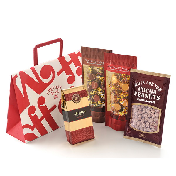 ●内容/ラウンドプレーン(ミルクチョコレート)・ラウンドプレーン(セミスイートチョコレート)・アルカディア(アーモンド)・ココアピーナッツ×各2
