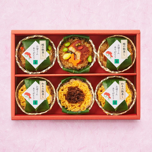 ●内容/鰻の飯蒸し(100g)×3個・和牛の飯蒸し(100g)×3個