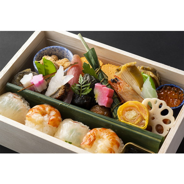 ●内容/1人前(手毬寿司(海老、鯛)・粽麩・出汁巻玉子・才巻海老芝煮・宇治丸(鰻)印籠煮・鰊昆布巻・合鴨松風焼・花蓮根酢漬け・鱒の子南蛮漬け・鯛揚げ煮・塩漬けいくら・小芋煮・蛸柔らか煮・あやめ麩煮・菜種辛子和え・梅貝酒煮・絹さや八方煮・鶴大根酢漬け・鯛の子生姜煮・サーモン錦糸巻・鮑旨煮・穴子鳴門巻・小茄子含め煮・酢取茗荷・梅蒲鉾松葉串・甘酢生姜・木の芽)