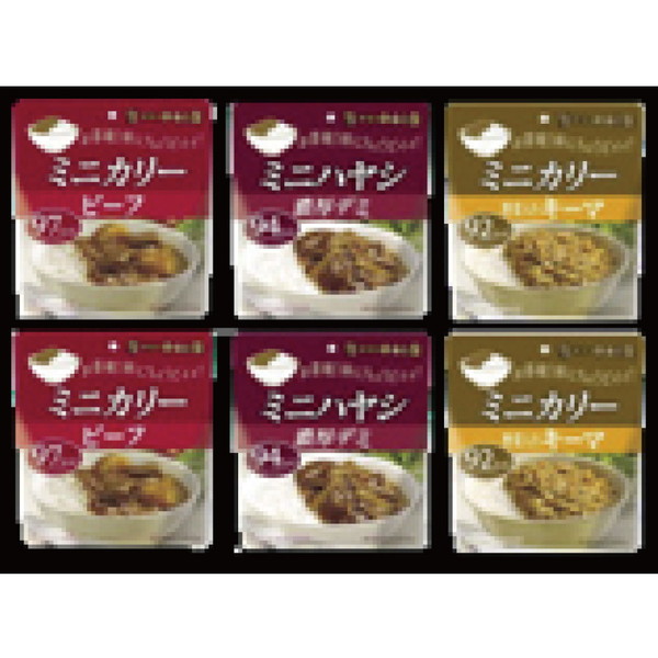 お茶碗一杯にちょうどいいサイズのカレーの詰め合わせです。ミニビーフ2個、キーマ2個、ハヤシ2個