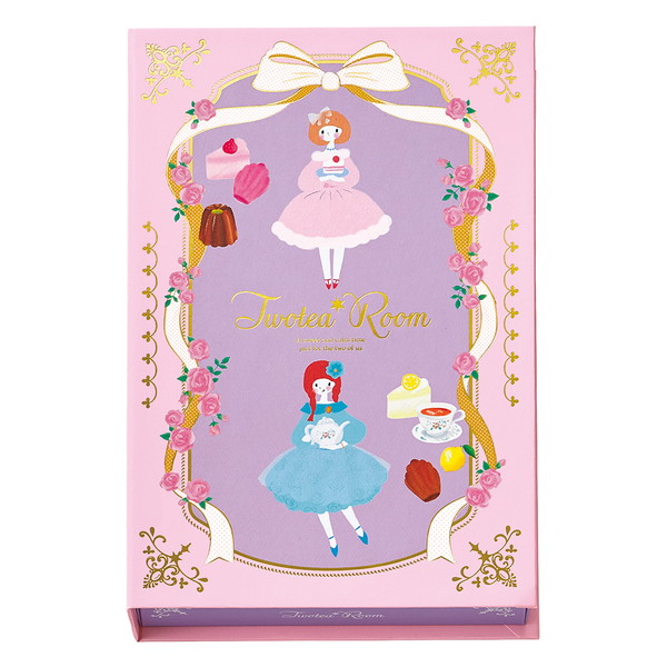 アフタヌーンティーを嗜む二人の女の子をデザインコンセプトに、バラやリボンなど華やかな世界観に仕上げたデザイン。