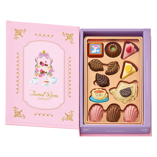 ショートケーキやマドレーヌなどの形を模した可愛らしいミニチュアのチョコレートをブック型の箱に詰め合わせました。