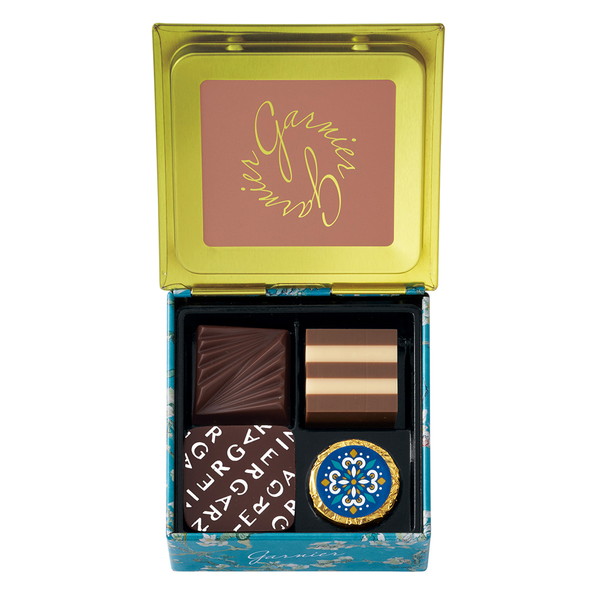 フィンセント・ファン・ゴッホの「花咲くアーモンドの枝」が描かれたコロンと可愛い手の平サイズの缶に、丁寧に仕上げたチョコレートを詰め合わせました。