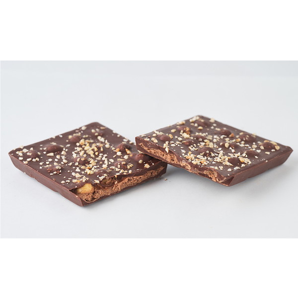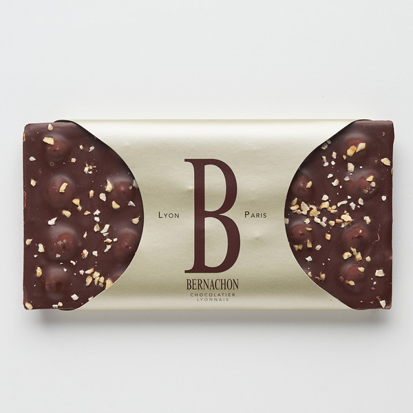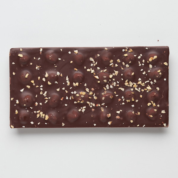 ダークチョコレートの中に丸ごとのヘーゼルナッツとプラリネのスプレッドを閉じ込めました。