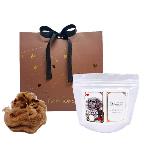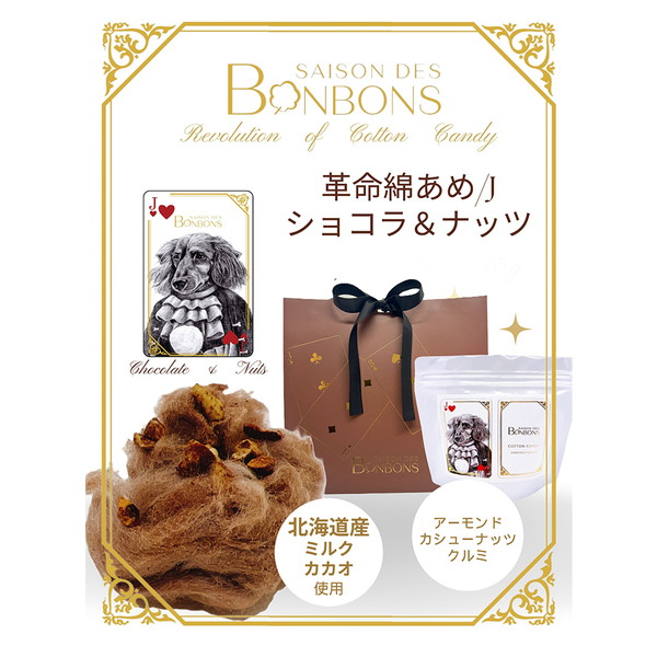 くちどけの良いミルクチョコのきめ細かい綿あめに、歯ごたえのあるミックスナッツが絡んだ、新しい食感のお菓子です。