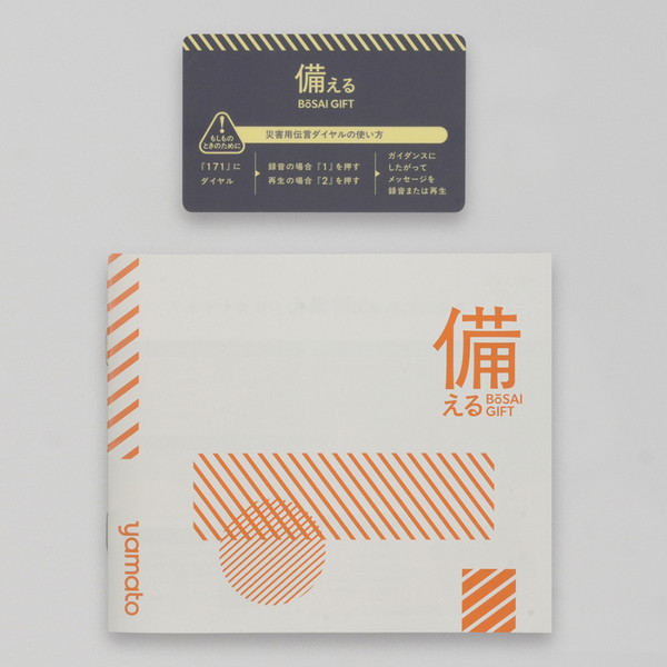 また、カードには「災害用伝言ダイヤル」の使用方法が記載されており、ギフトを貰い終わったあとも、お財布やIDケースに入れて持ち歩けば、いざというときの備えになります。
