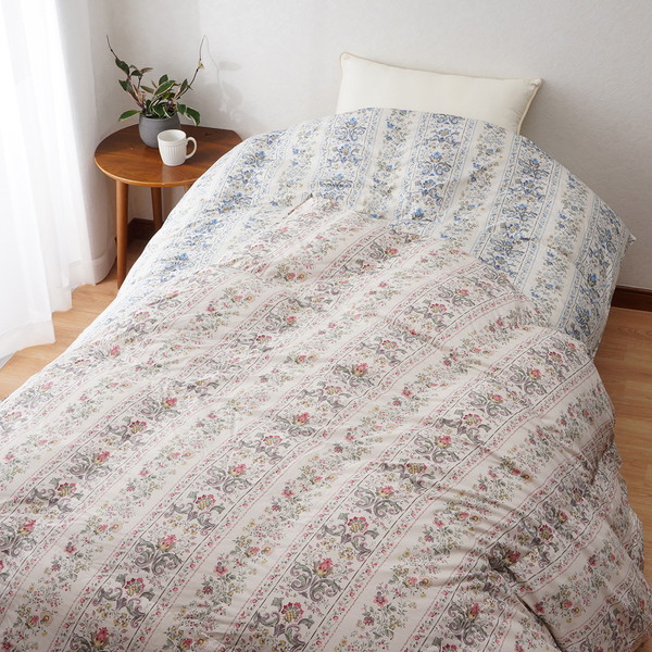 ●素材/ふとんがわ:ポリエステル85%、綿15%(立体キルト) 詰めもの:イングランド産ホワイトダウン90%、フェザー10% 1.2kg ダウンパワー370