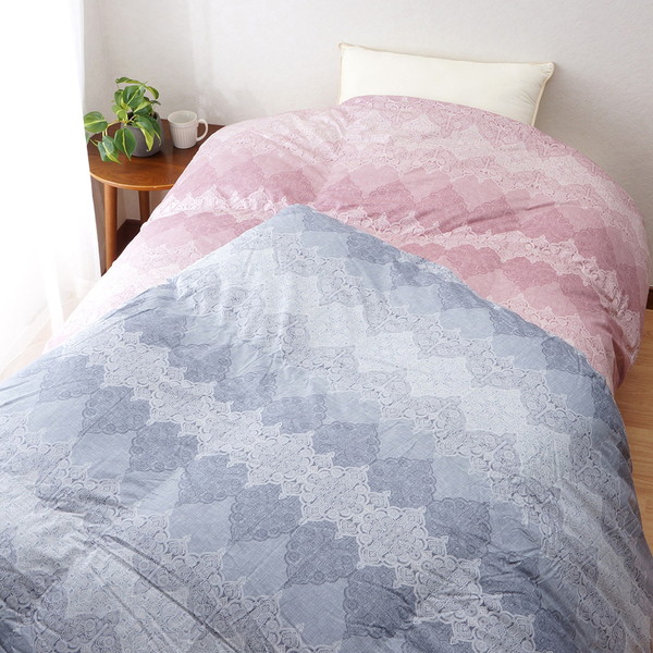 ●素材/ふとんがわ:綿100%(80サテン・二層キルト) 詰めもの:ポーランド産ホワイトマザーグース93%、フェザー7% 1.2kg ダウンパワー410