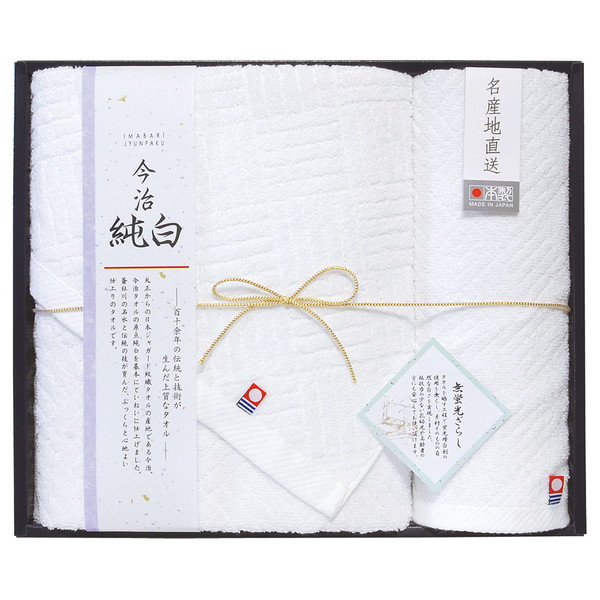 [日本名産地タオル] 今治純白(やわらかやさしい無蛍光晒し)タオルセット[TMS3008904]