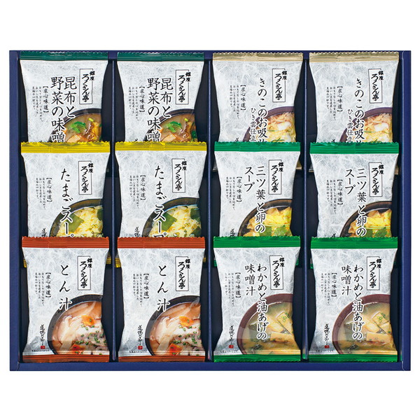 ●内容/昆布と野菜の味噌汁×2、きのこのお吸物ひき雲仕立×2、たまごスープ×2、三ツ葉と卵のスープ×2、とん汁×2、わかめと油あげの味噌汁×2