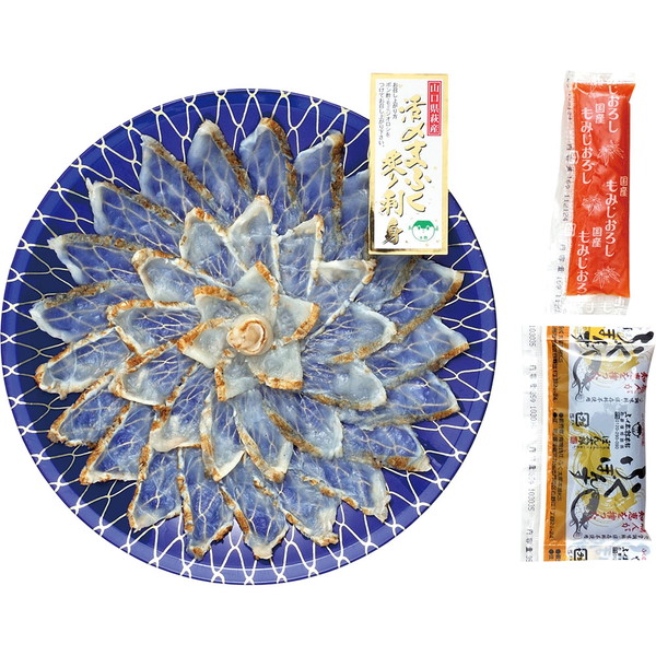 ●内容/まふく炙り刺身(80g)22cmプラ皿、ポン酢35g、モミジオロシ16g ※刺身皿のデザインは変わる場合がございます。