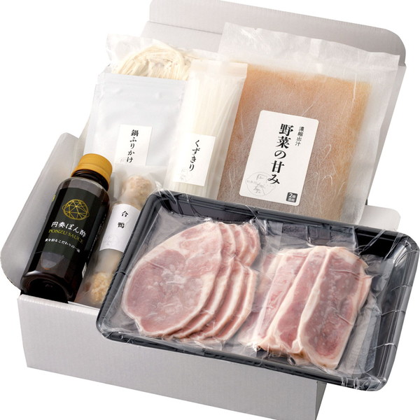 ●内容/合鴨ロース肉・合鴨モモ肉 各130g、合鴨つみれ×5、濃縮出汁400ml、円奏ぽん酢200ml、鍋ふりかけ5g、半生うどん180g