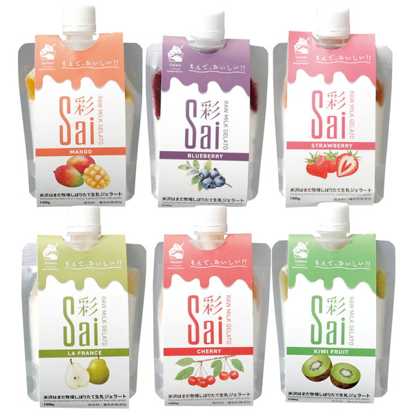 ●内容/パウチジェラート(ラ・フランス・さくらんぼ・ブルーベリー・いちご・マンゴー・キウイ 各100ml)